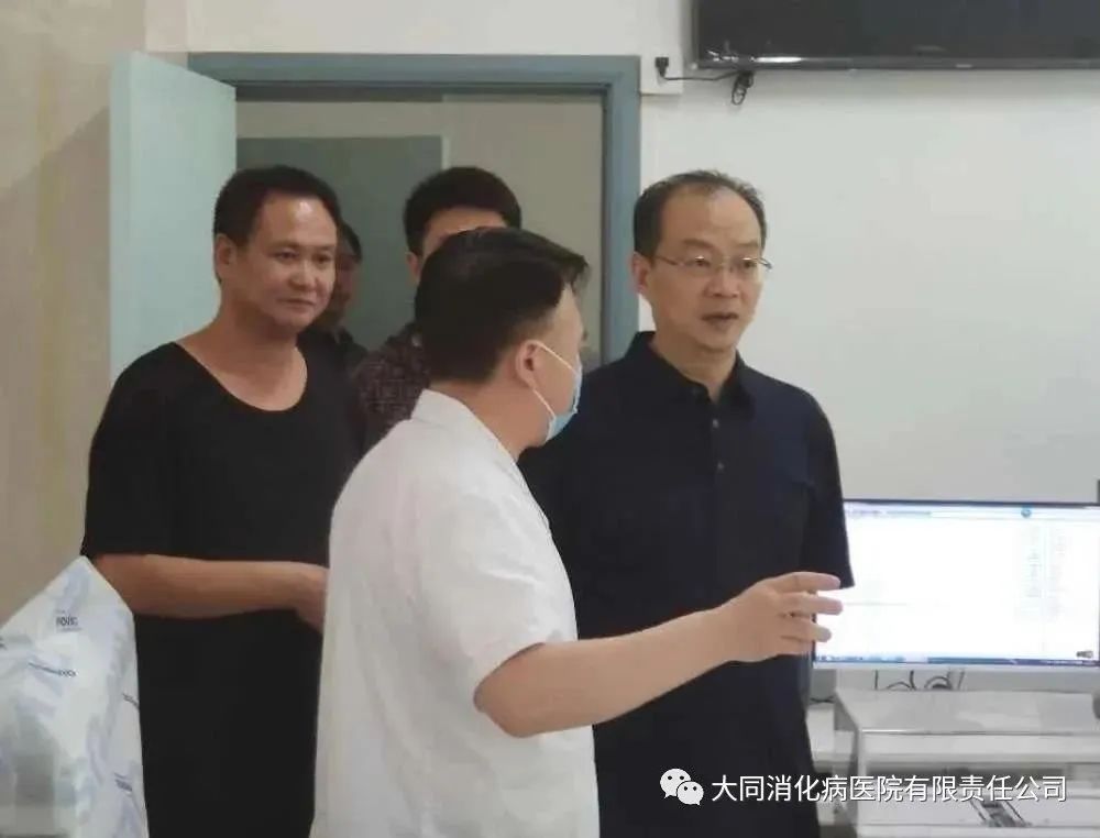 张团一行实地察看了大同消化病医院党支部活动室,听取消化病医院院长章文兴介绍了医院的经营发展历程,近年来所取得的成效,重点医学领域科研工作和党建特色工作推进情况。